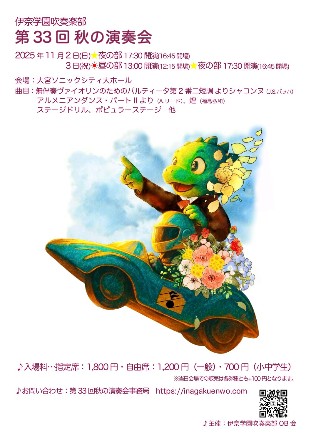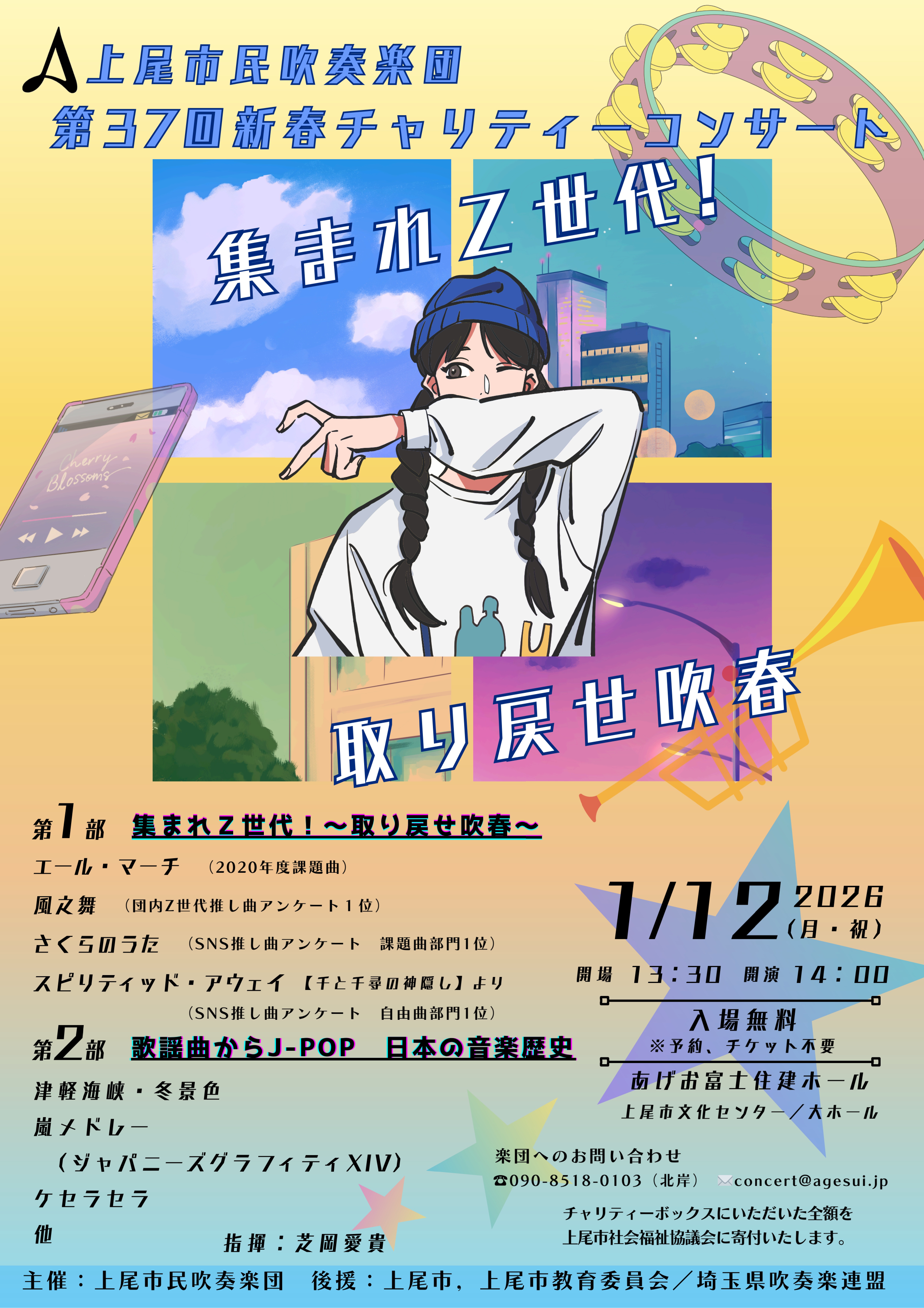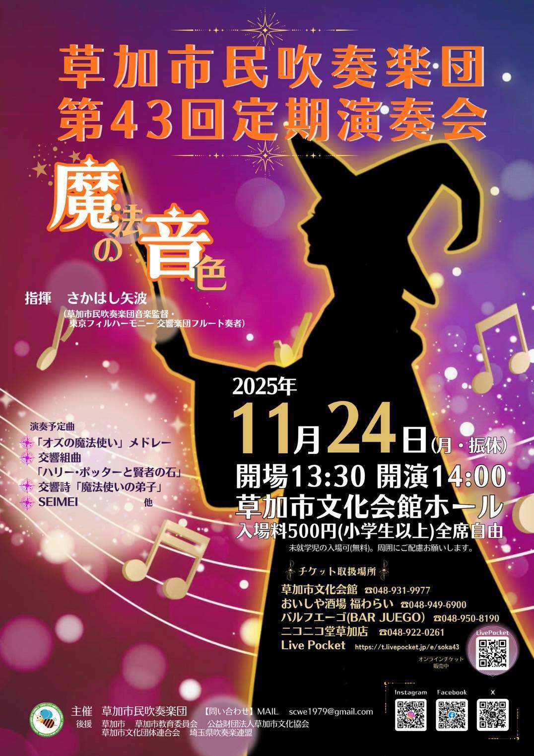 Wind Ensemble SORA ファミリーコンサート 伊奈学園吹奏楽部 第33回秋の演奏会 おおみや市民吹奏楽団 第32回定期演奏会 草加市民吹奏楽団 第43回定期演奏会 あおぞらハーモニー吹奏楽団第17回ファミリーコンサート 県立越谷総合技術高等学校 第38回レギュラーコンサート 上尾市民吹奏楽団 第37回新春チャリティーコンサート